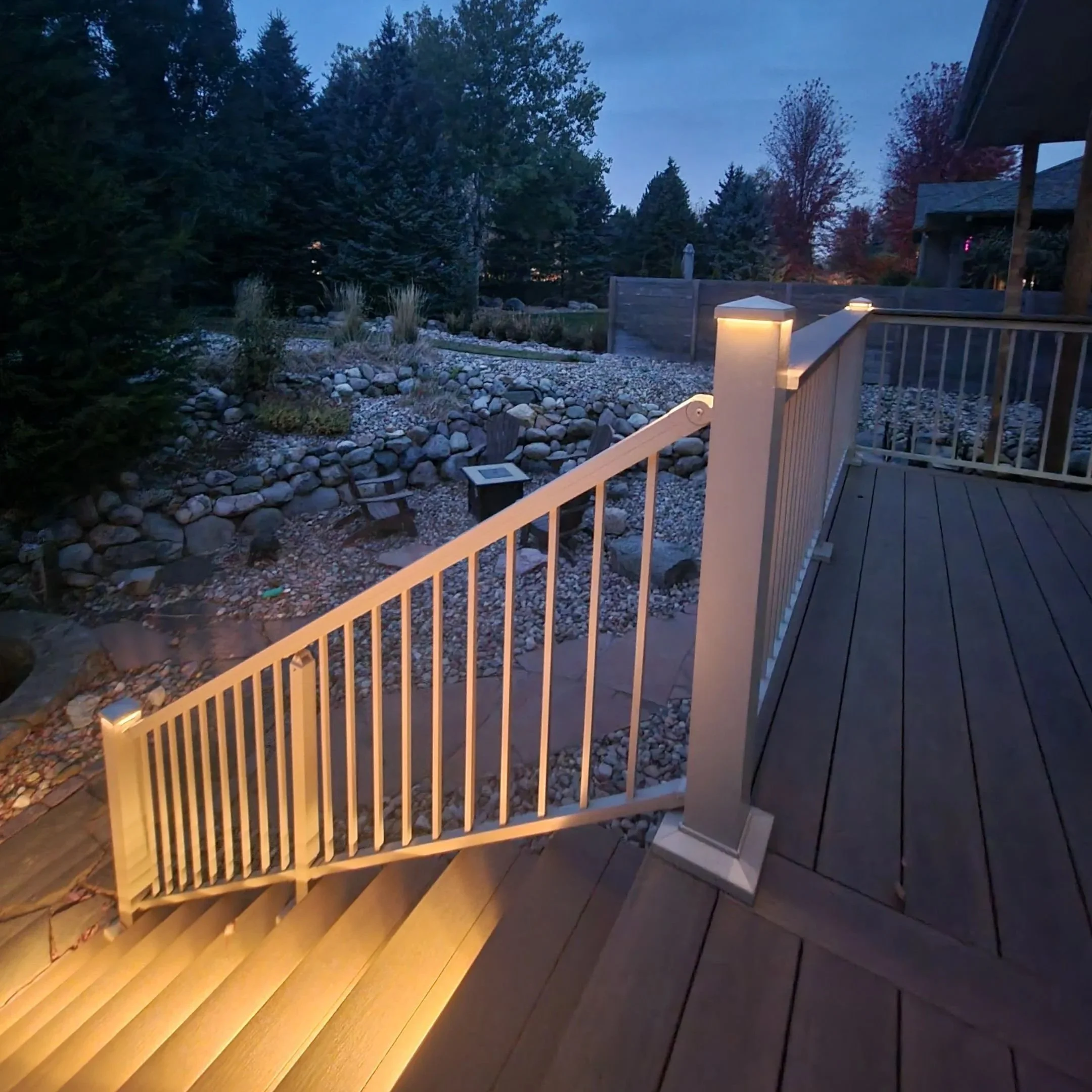 Deck Skirting • Picture Frame Steps • Drink Rail • Lighting • Privacy Railing